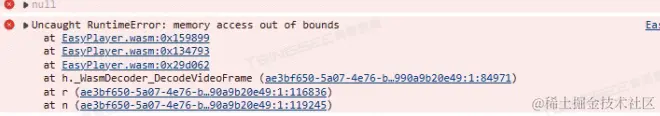 技术人员在排查中了解到,现场接口正常调用,也正常请求ts文件,没发现对应报错。测试用户现场的播放器包,在本地运行发现出现了报错:内存访问越界问题。