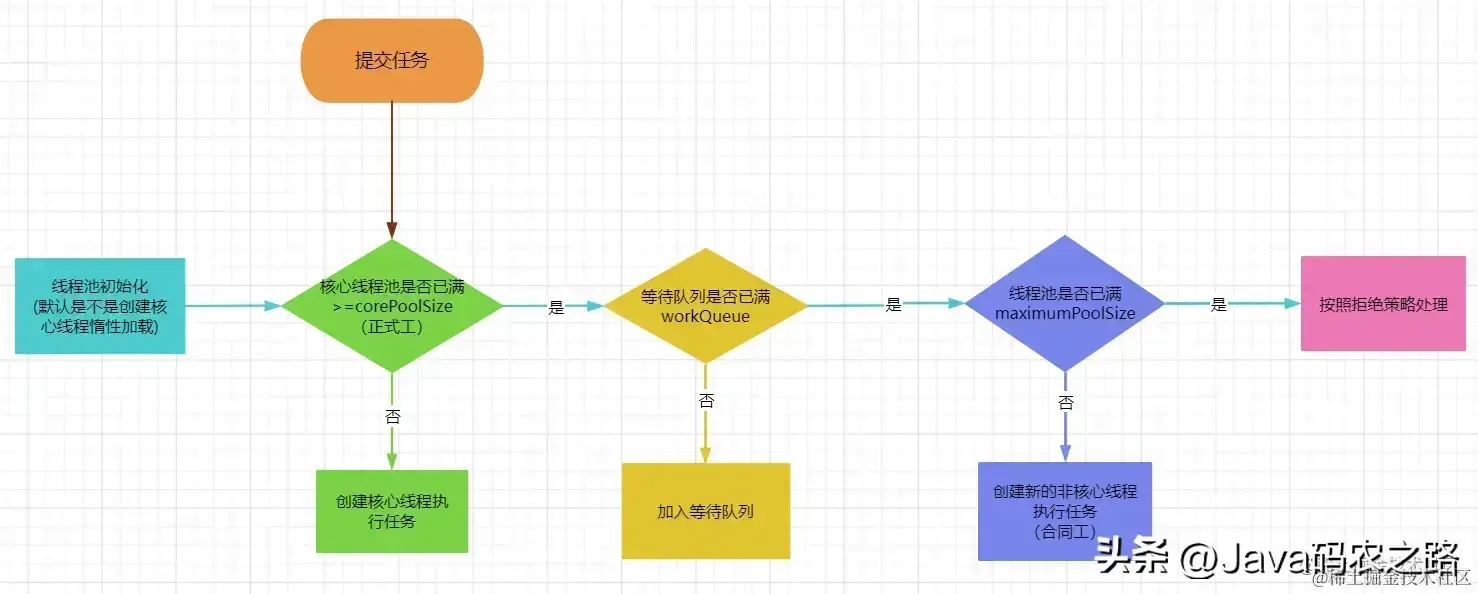 一个线程提交到线程池的处理流程如下图