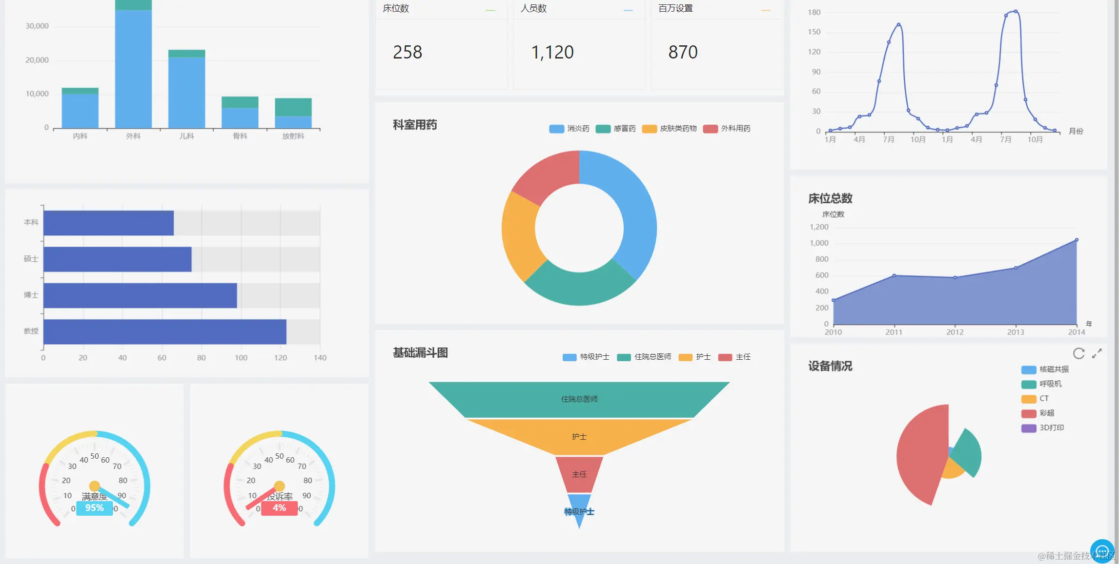 - 大屏设计器支持几十种图表样式,可自由拼接、组合,设计炫酷大屏
