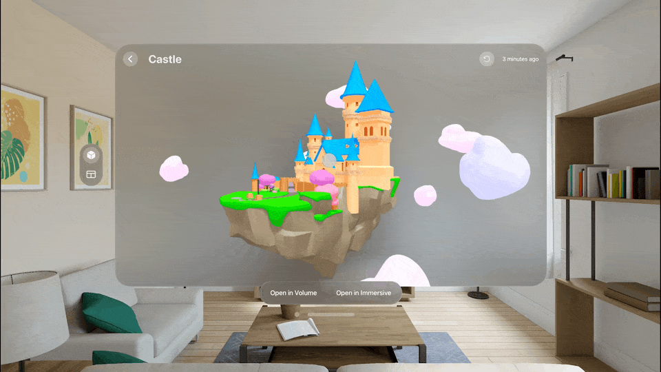 接下来,你只要在 Apple Vision Pro 中打开 Spline Mirror,就可以在 Recent 中看到这个场景: