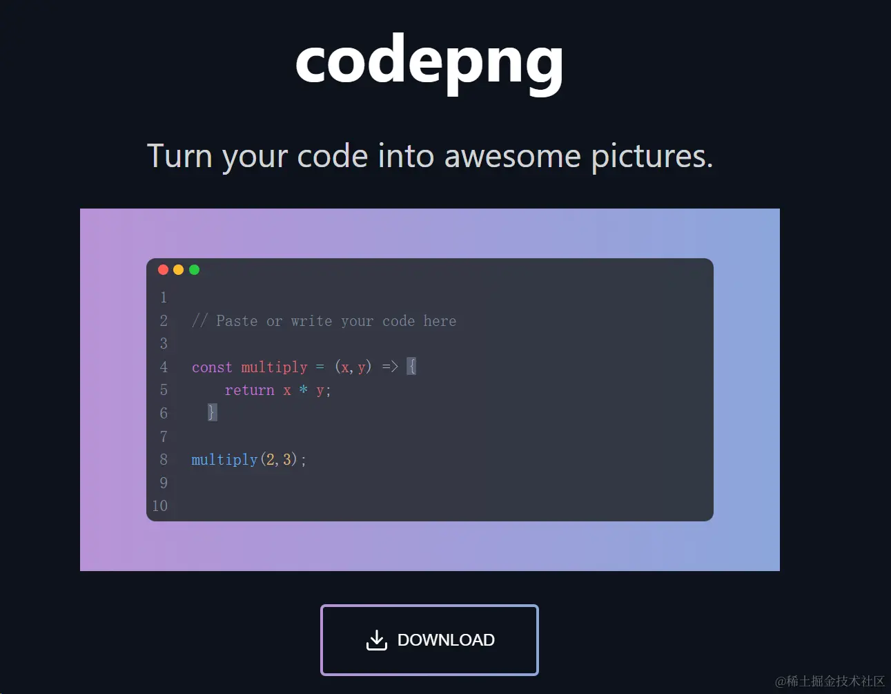 在线代码截图工具,根据输入的源代码,可以生成漂亮的代码图片。