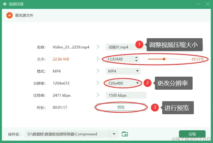 为了解决这一问题,视频压缩软件成为了不可或缺的工具,能够帮助我们有效地减小视频文件的大小,使其更便于存储、分享和传输。这里推荐使用数据蛙视频转换器,这款软件简单易用,提供了高效的压缩算法,我们可以轻松实现视频压缩而不牺牲画质。