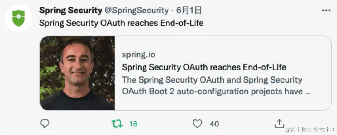 - Spring 团队正式宣布 Spring Security OAuth 停止维护,该项目将不会再进行任何的迭代