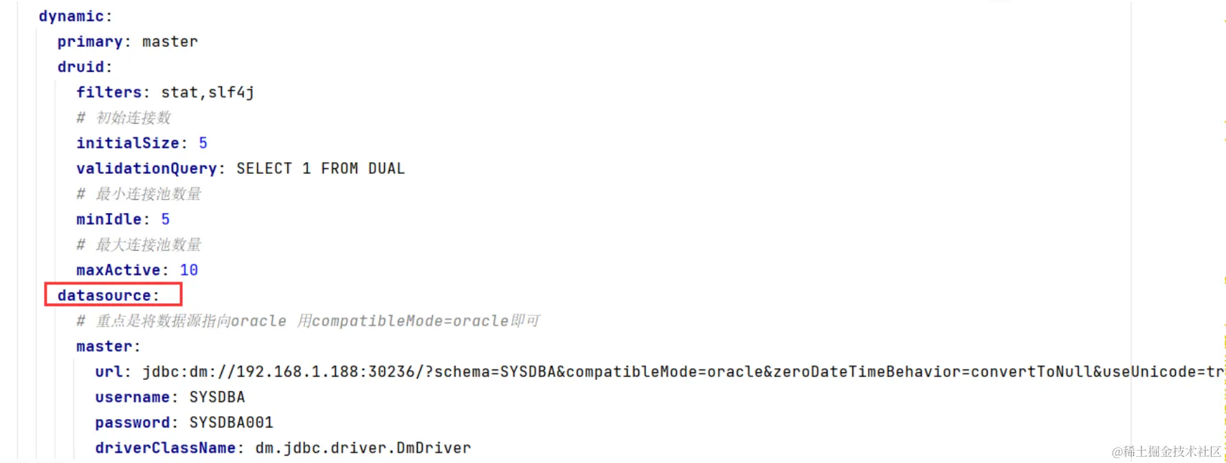 url: jdbc:dm://192.168.1.188:30236/?schema=SYSDBA&compatibleMode=oracle&zeroDateTimeBehavior=convertToNull&useUnicode=true&characterEncoding=utf-8