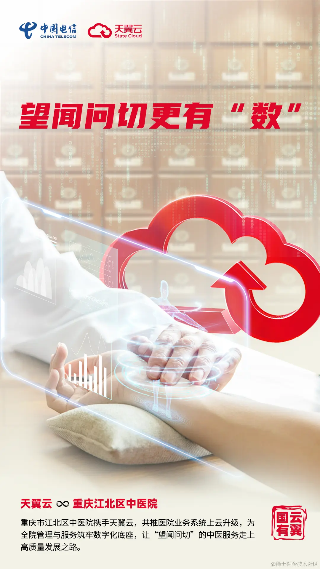在此背景下,重庆市江北区中医院(以下简称“江北区中医院”)紧紧把握发展新机遇,携手天翼云构建起了高效统一、安全可靠的医疗信息化系统,让中医诊疗及健康管理搭上数字化发展的“快车”。