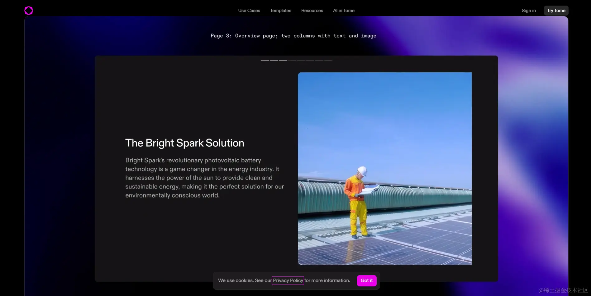 - 内容与设计的完美结合:tome不仅关注设计,还关注内容的表达,帮助用户制作出既有深度又有吸引力的演示文稿。