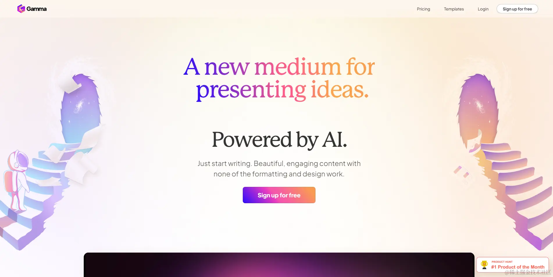 Gamma 是一款新兴的PPT制作AI工具,它专注于提供高效的演示文稿制作体验。Gamma以其简洁的界面和强大的AI辅助功能,帮助用户快速生成具有视觉冲击力的演示文稿。