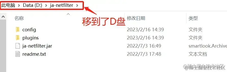 将 ja-netfilter补丁所在的整个文件夹移动到电脑上某个位置,我这里放到了 D 盘下: