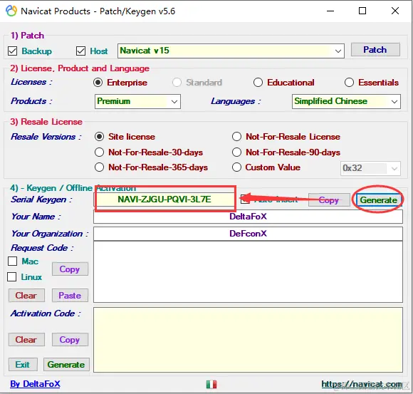 上面几项设置好后,点击“Generate”,会自动生成一个注册码,如下图