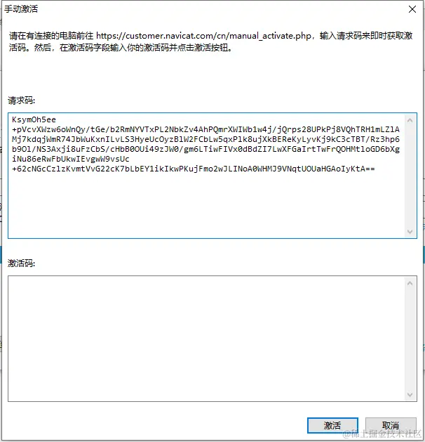 8.将上面的激活码复制到手动激活窗口中,并点击“激活”