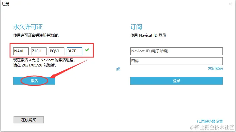 Activation Code框中会生成一个激活码