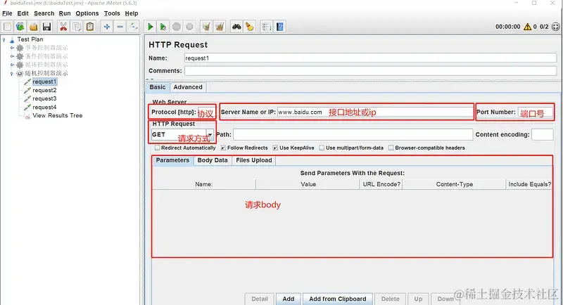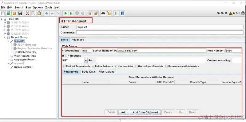 - HTTP Request Sampler (模拟http请求)