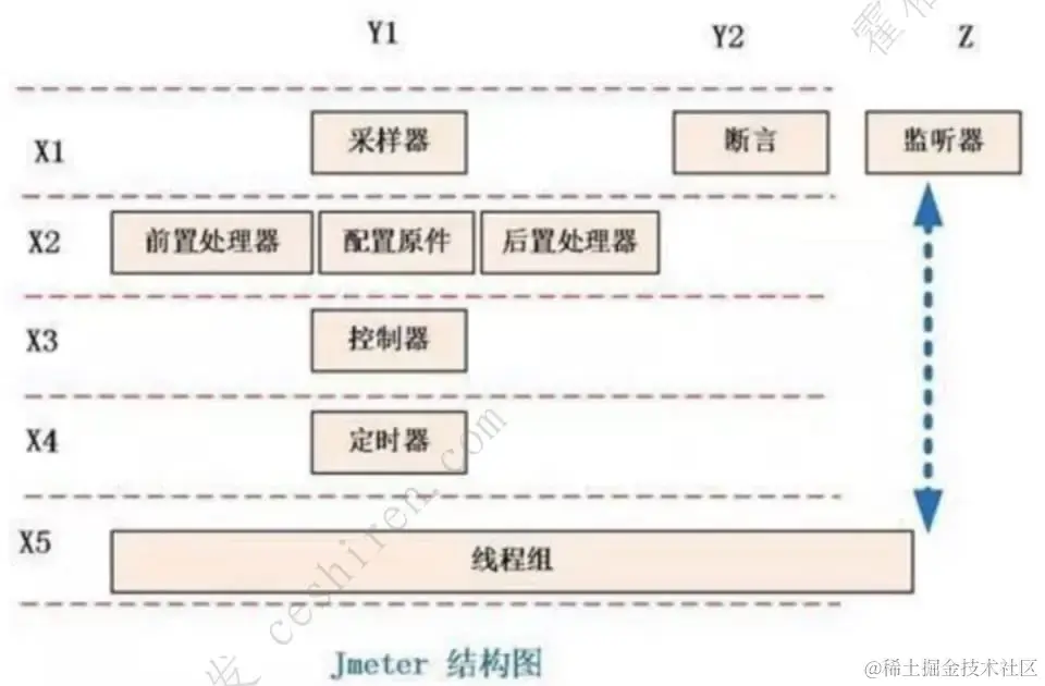 - 八大组件执行顺序:线程组 - 定时器 - 控制器 - 前置处理器 - 配置元件 - 采样器 - 后置处理器 - 断言 - 监听器
