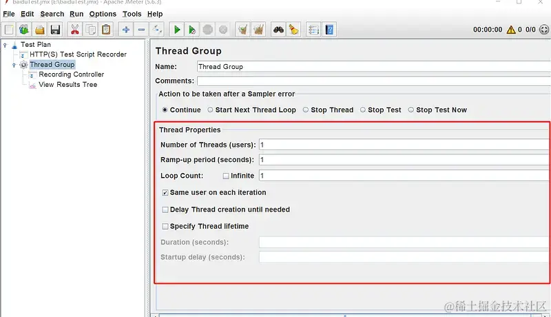 - 独立运行每个线程组:不勾选:各个线程组并行、随机执行;勾选:线程组按照前后顺序来执行