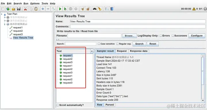 - 查看结果树(View Results Tree):查看接口请求与返回