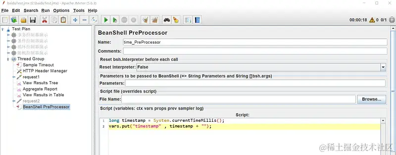 - 举例:直接在JMeter的Beanshell处理器中写代码生成当前时间戳;将时间戳值赋值给变量,然后传递给后续的请求样本
