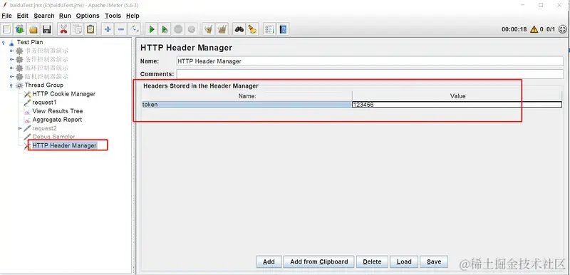 - HTTP Header Manager:管理请求头参数的组件,同级别的请求都会使用组件的参数