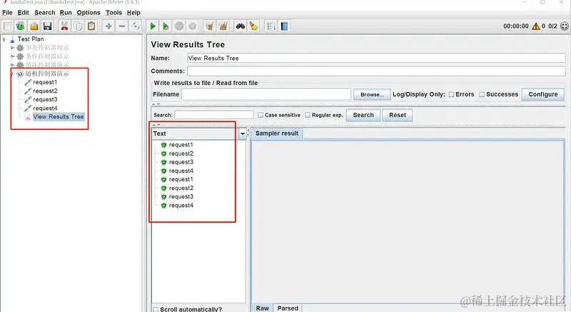 - 根据线程组配置,控制器下的多个请求进行随机请求
