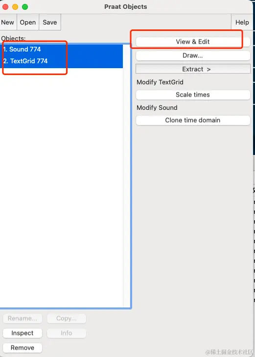 打开wav和textGrid文件,然后选中两个,点击view&Edit