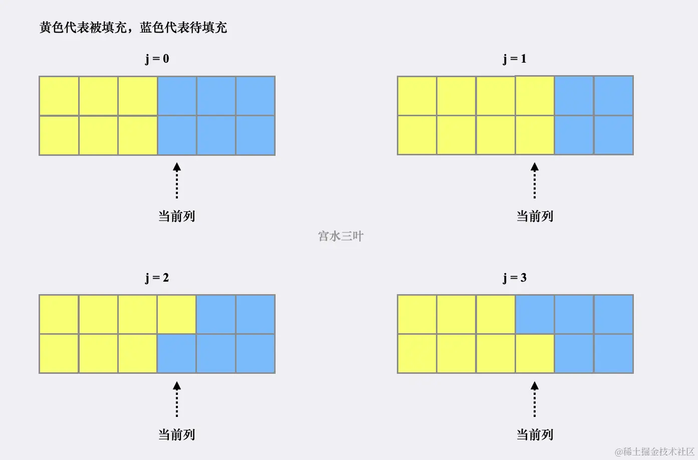 其中 取值范围为 分别对应了当前列的填充情况: