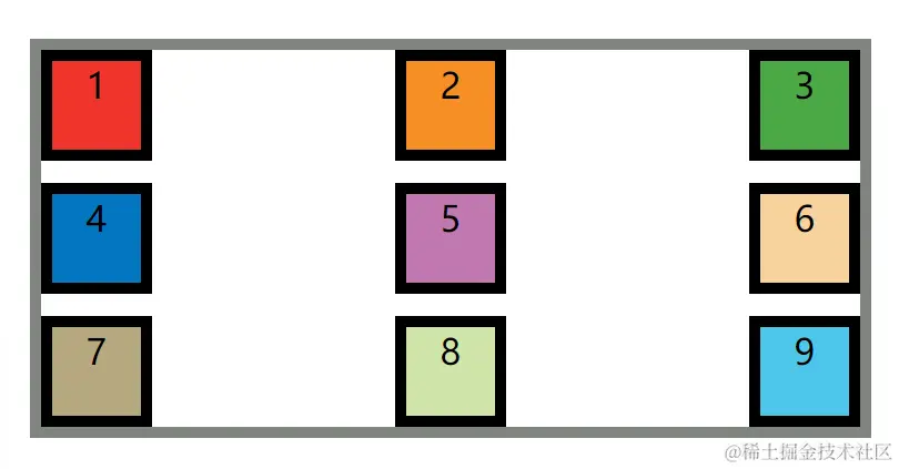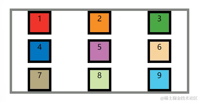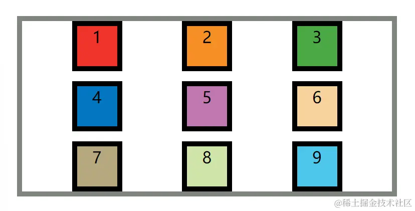 让我们先写好一个html文件,里面为九个div,再用css将其设立为三行三列的网格,之后的操作都用HTML中元素样式的变化来说明: