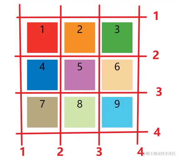 网格线(grid line)即为划分网格的线。水平网格线划分出行,垂直网格线划分出列。