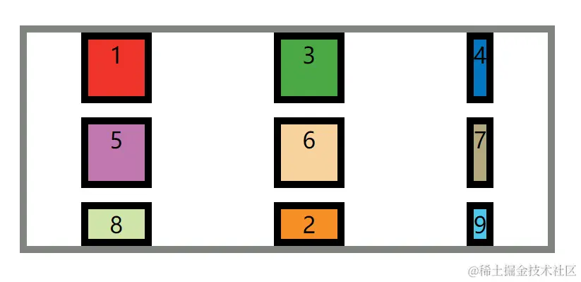 也可以设置为row dense 会以先行后列,要是第一行后面没填满,四号格可以填充进去的话,就会进行填充。