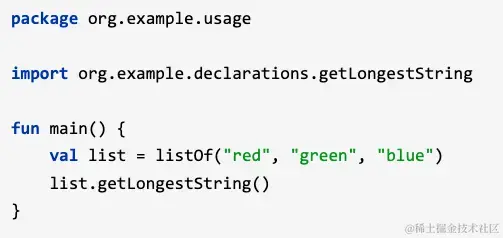 - 扩展函数的使用权限是同包内,同包内可以直接调用,不在同包内需要通过import引入扩展函数后才能使用。