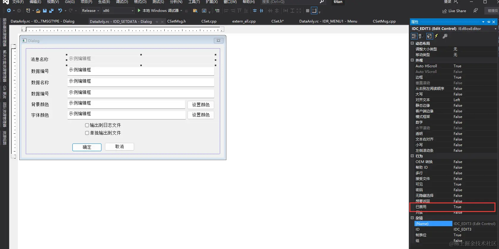 CSetMsg.cpp文件的修改:修改了 SetDatas函数、OnInitDialog函数
