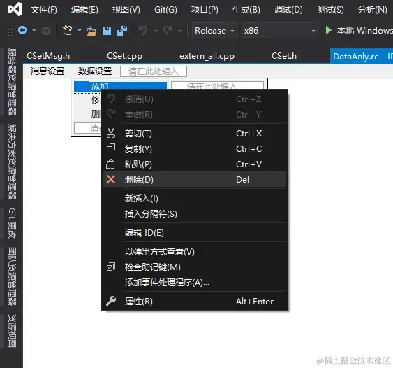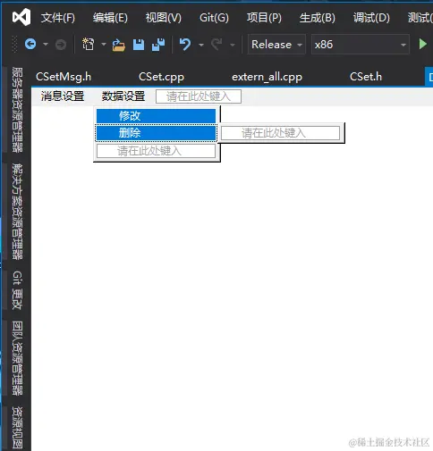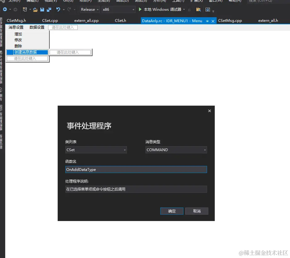 CSet.h文件的修改:新加 OnAddDataType函数,nMsgSel变量