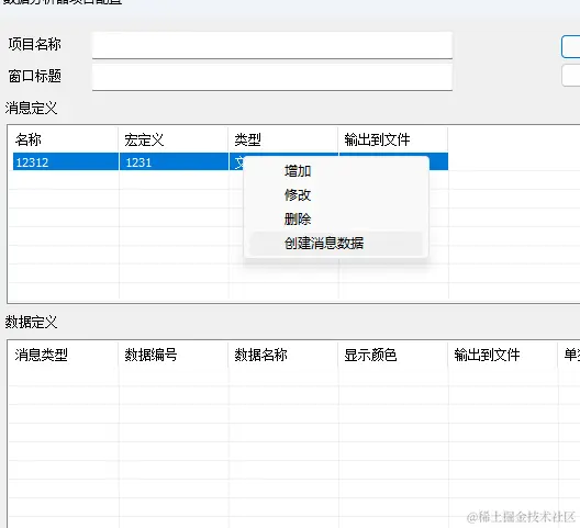 然后在给第一个菜单下,添加创建消息数据,如下图