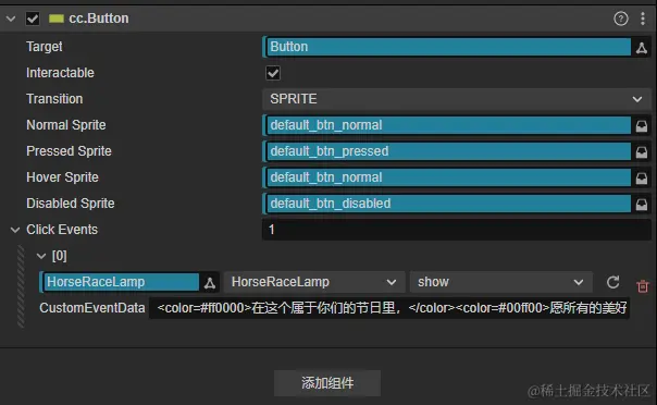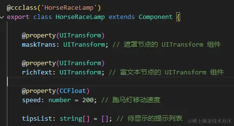 首先添加一个HorseRaceLamp组件,包括以下几个属性: