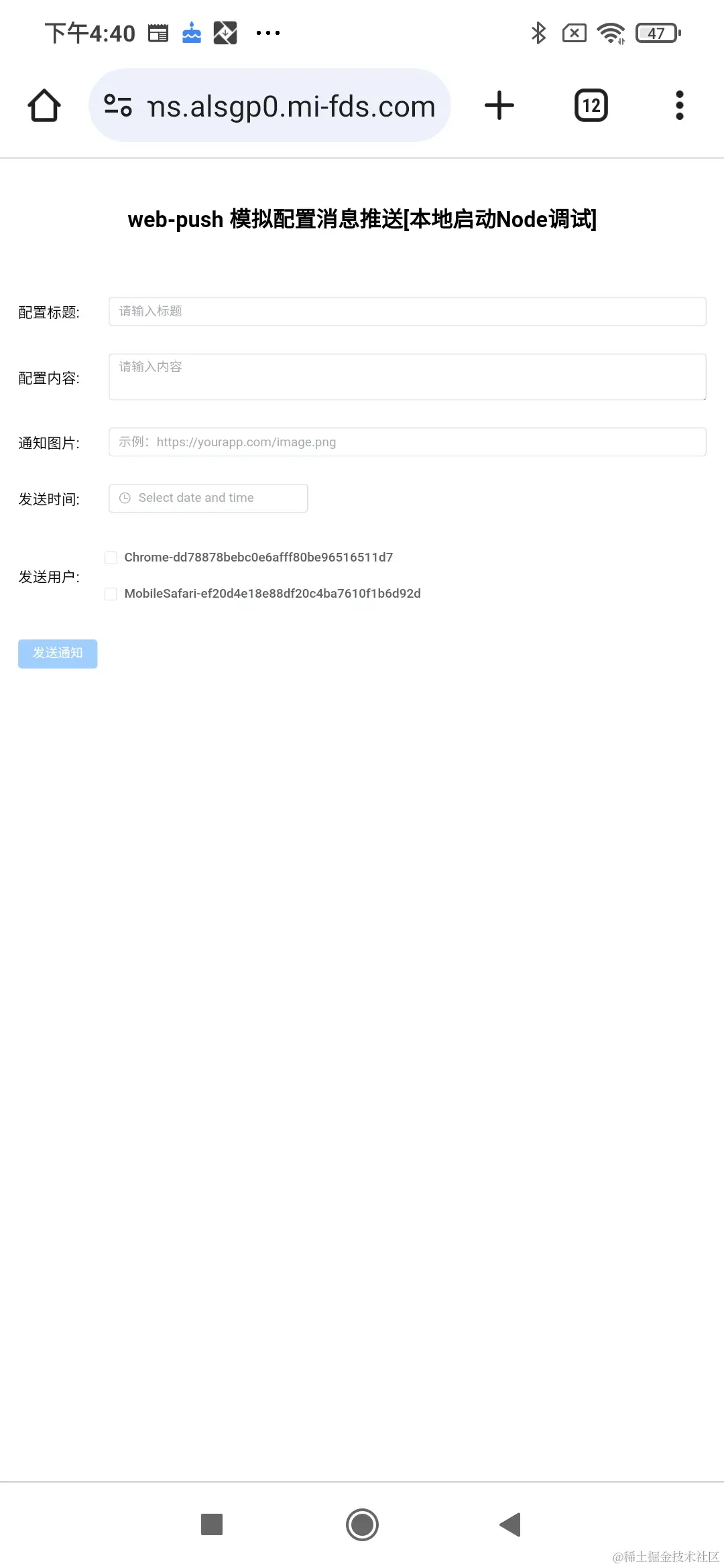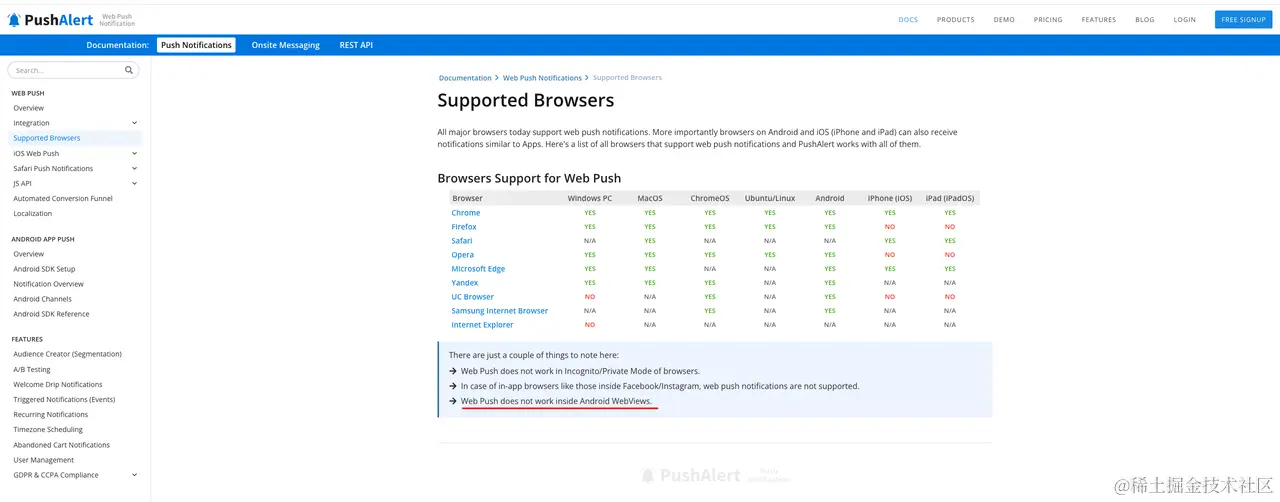 需要注意: 虽然Web Push有很多优势,但也有一些限制,经过测试在iOS设备上的Safari浏览器中,目前还不支持Web Push通知。