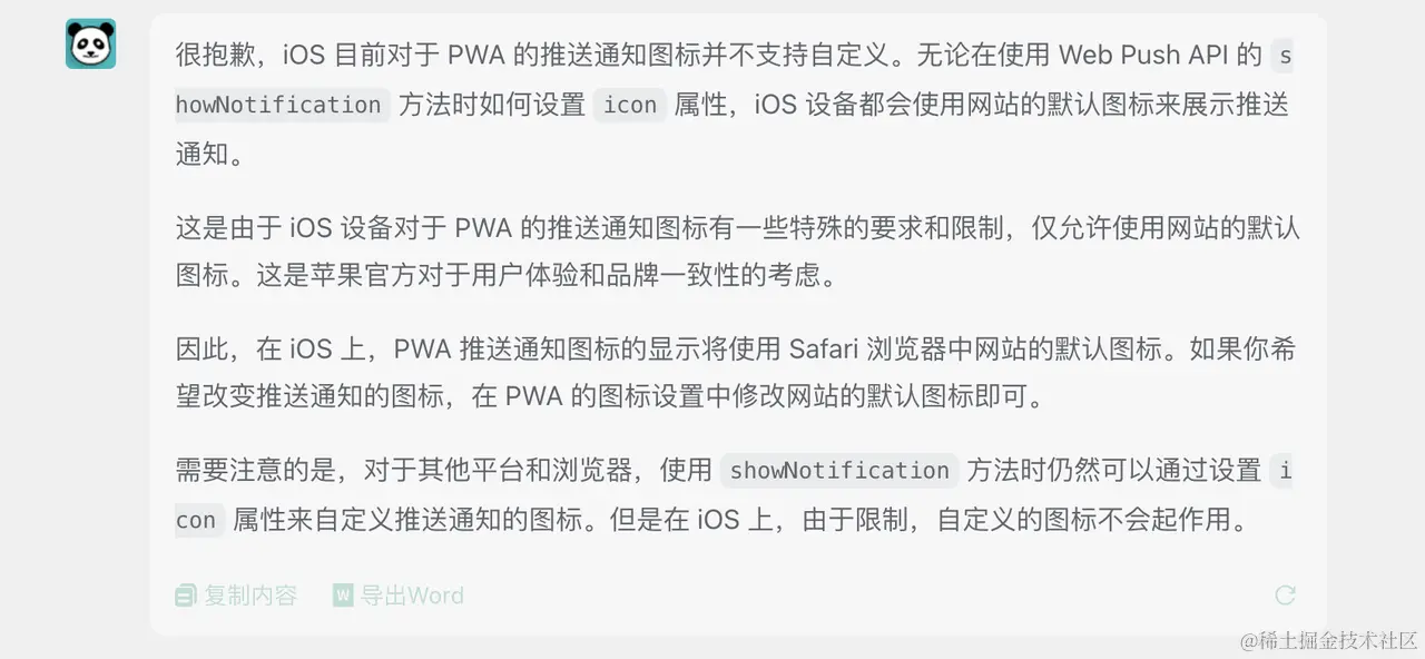 - 支持离线通知:即使在用户的设备离线或者浏览器未打开的情况下,也可以通过Service Worker在设备重新连接或浏览器打开时发送通知。