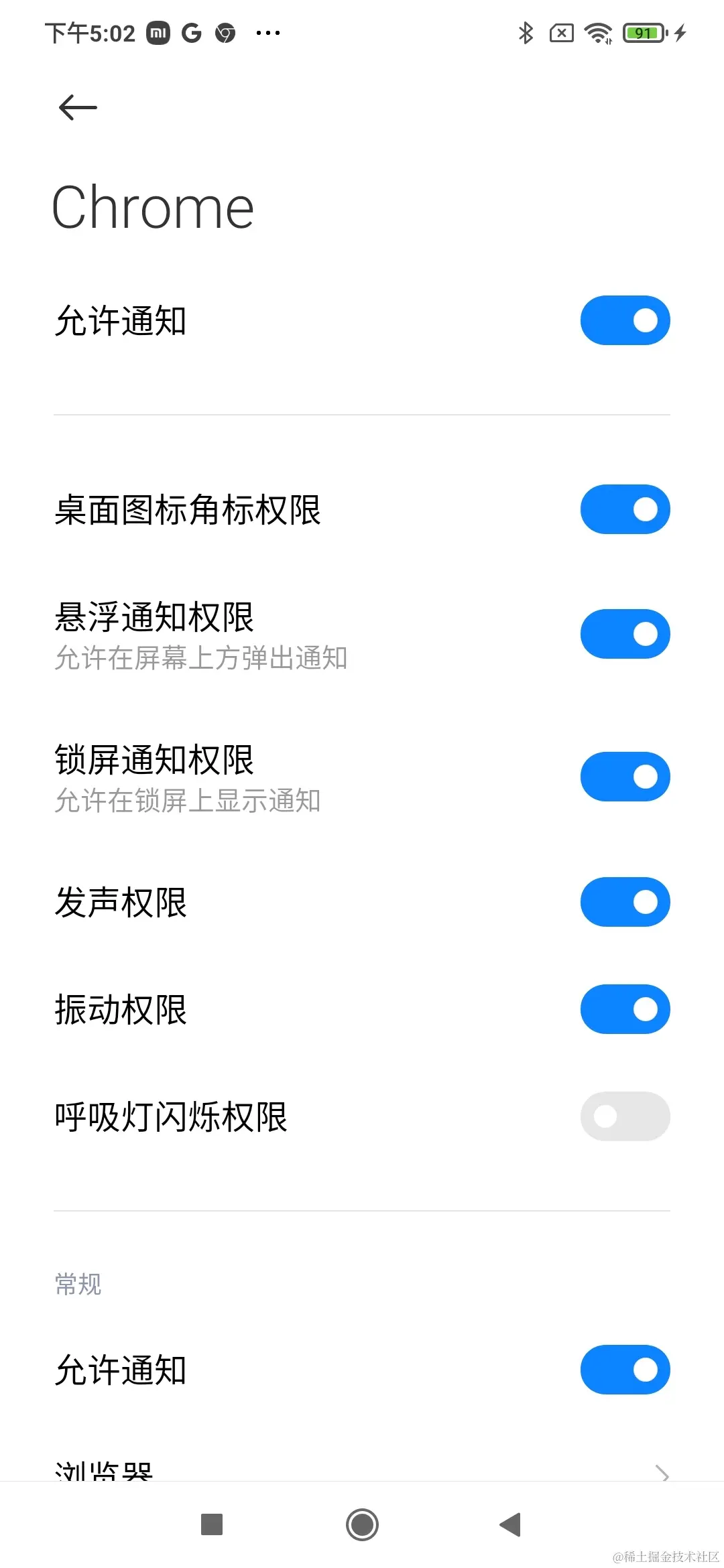 Chrome浏览器 => 头部的三个点=> 设置 => 通知 「打开全部的通知」=> 网站 => 设置当前弹出形式