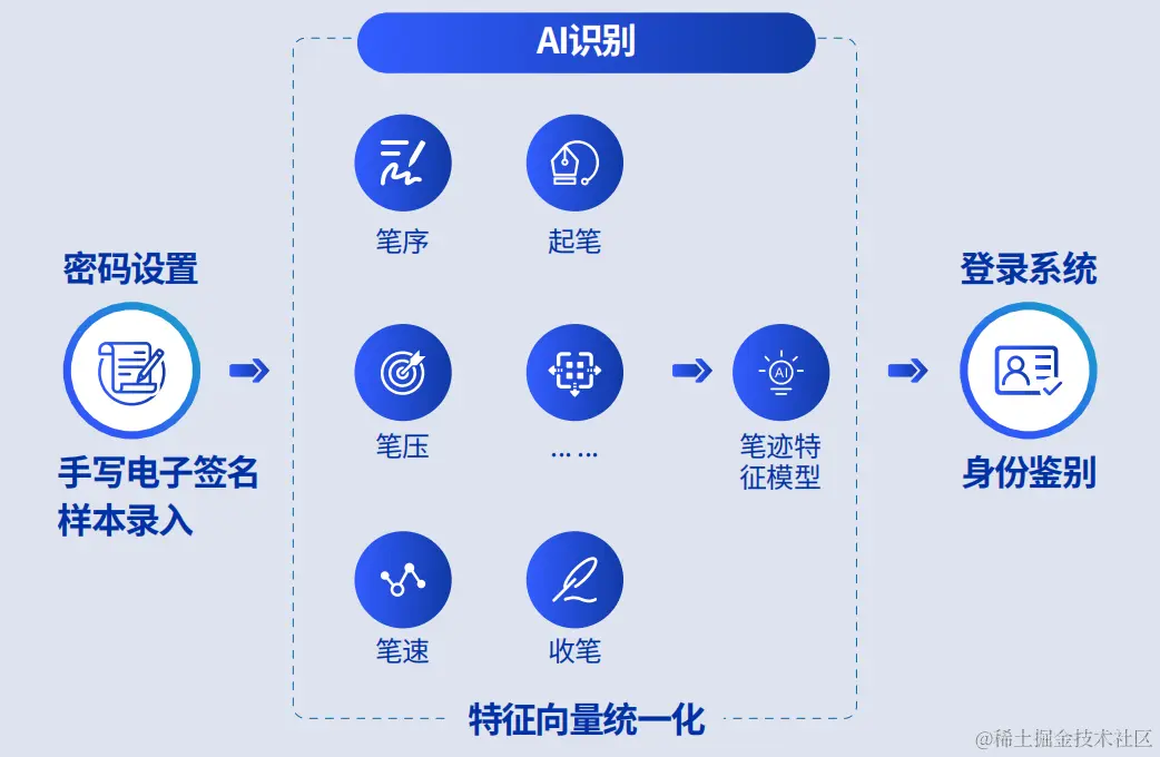 笔迹作为个人独有的动态生物特征,具有专属性和可控性,既能证明“我是我”,又有“我愿意”的主动表达优势。将笔迹作为个人“看得见、拿不走”的专属密码,只需按照书写习惯进行签名,即可实现身份鉴别与意愿表达的合一印证。辨识度高、难以模仿,极大规避了传统口令密码设置繁杂和难以记忆等问题,更加便捷和安全。