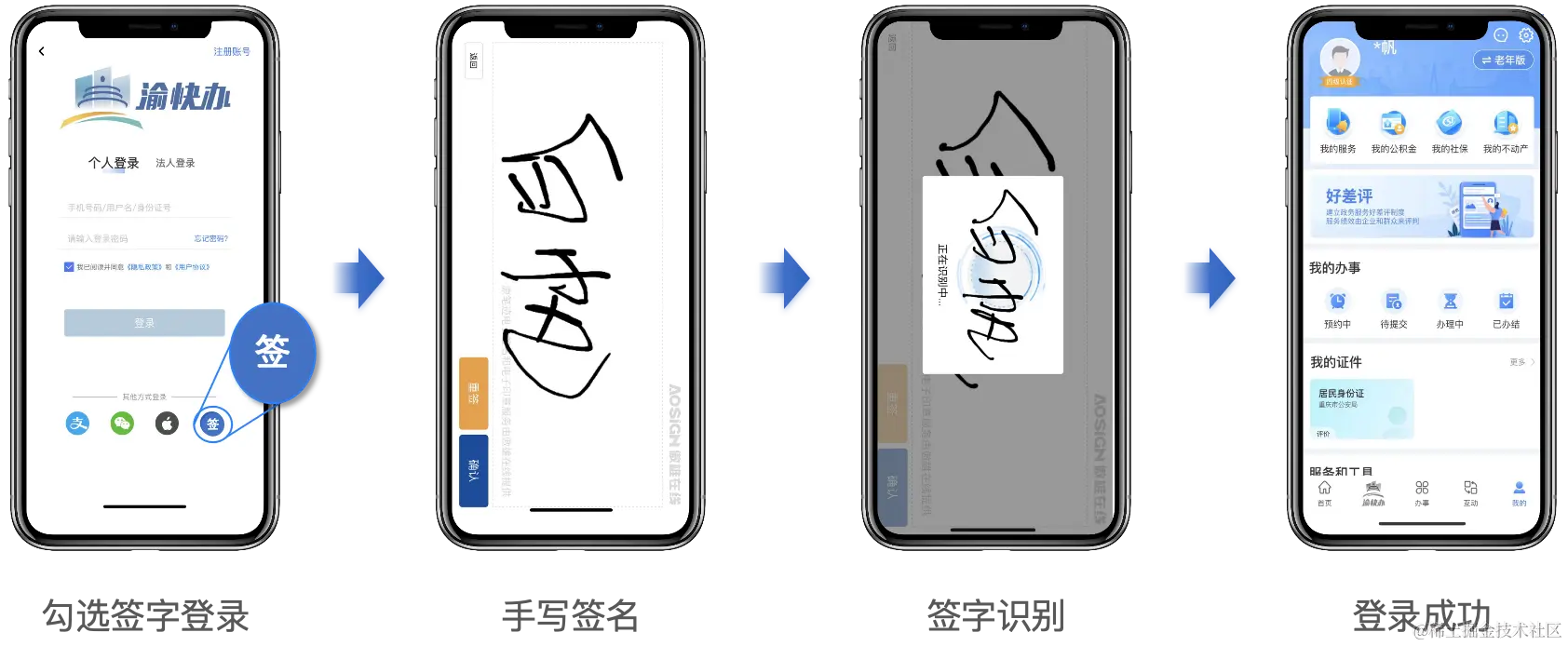 “渝快办”作为重庆市移动政务服务平台,覆盖重庆38个区县,注册用户超2600万。亲笔签助力“渝快办”实现笔迹签名登录,用户无需记忆密码、担心密码遗忘,随手签字即可登录账户,极大地提高了企业群众办事效率,提升了政务服务的质量。