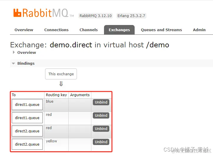 - 功能:基于RoutingKey(路由键)将消息发送给订阅了相应RoutingKey的队列。如果一个队列没有订阅某个RoutingKey的消息,那么它就不会收到这个消息。