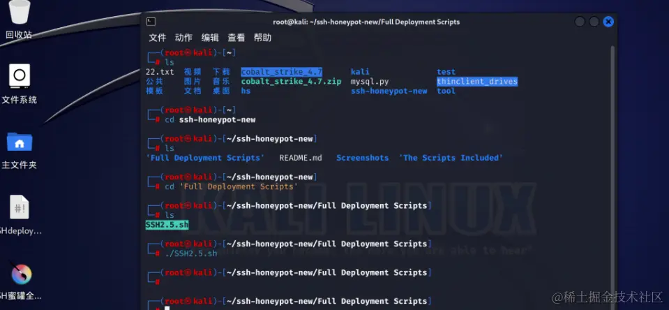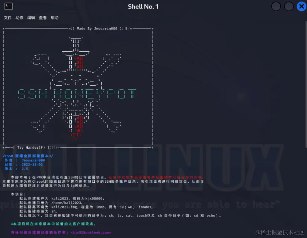 git clone github.com/kjx52/ssh-h… ssh-honeypot-new/Full Deployment Scripts``./SSH2.5.sh