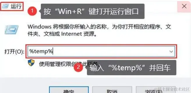 Windows系统中有许多缓存文件,包括浏览器缓存、DNS缓存、日志文件等。这些文件可以占用大量的空间,导致C盘不足。清理缓存可以释放C盘空间,同时还可以提高系统的运行速度。【Win+R】打开运行窗口,输入【%temp%】并回车,然后将所有文件和文件夹删除即可。