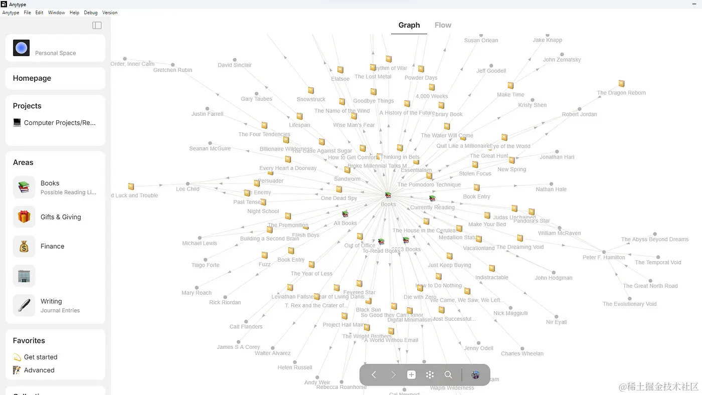 配置关系之后,Anytype的图形里就可以看到这个样子,是不是有Obsidian的感觉了。