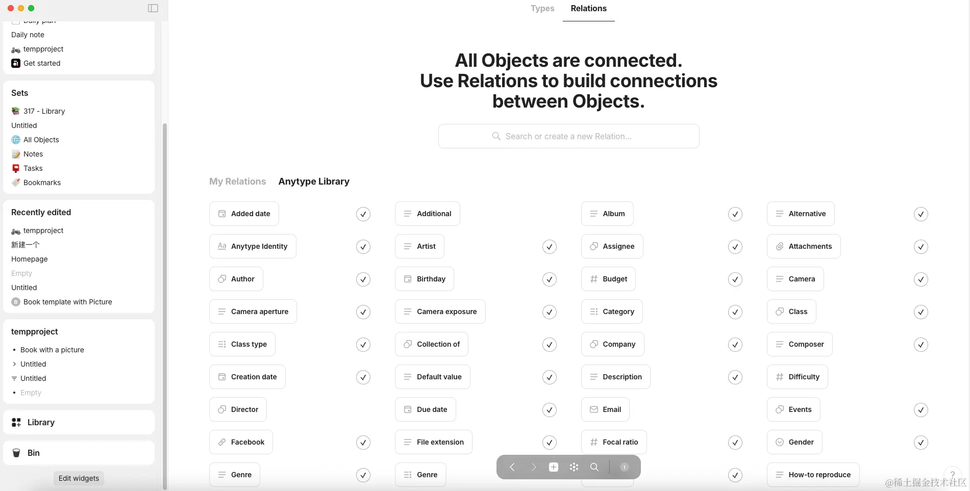 Library中还可以看到目前系统中的全部relation,可以安装官方提供的relation,也可以自己创建属于自己的。