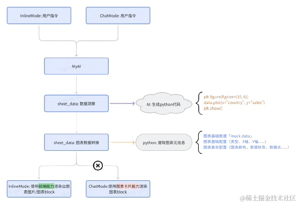 | 场景 | 前端在表格上下文中调用 转换工具将 echarts spec 转换为 VChart Spec | 在智能助手上下文中,调用表格接口获取数据,利用后端提供的智能化接口进行数据分析,图表生成,摘要生成。通过消息卡片进行消息推送 |