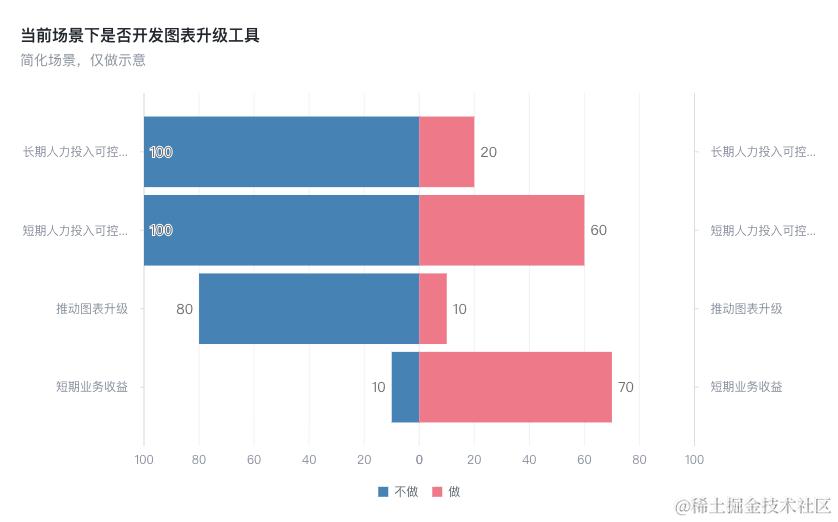 在这个场景中去看开发图表升级工具的利弊。