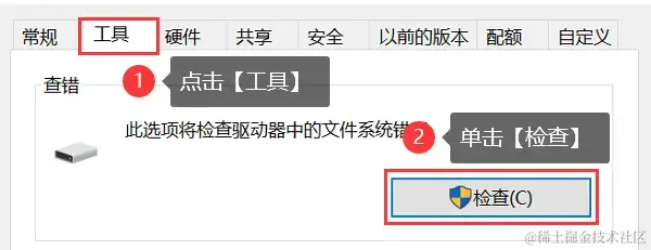 第4步:勾选【自动修复文件系统错误】 和【扫描并尝试恢复坏扇区】选项,点击【开始】按钮;