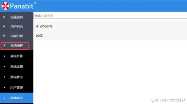 然后使用后台命令执行进行getshell,成功进入内网。系统维护->终端命令