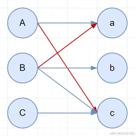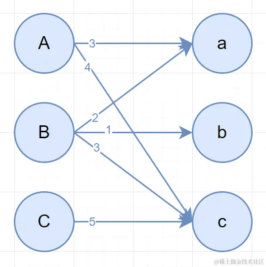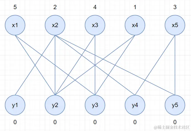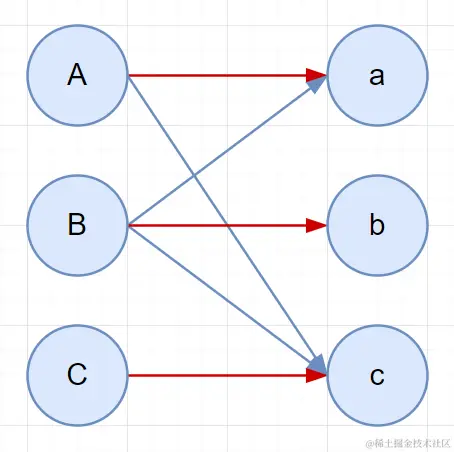 System.out.println("左边顶点 " + km.match[v] + " 匹配右边顶点 " + v);