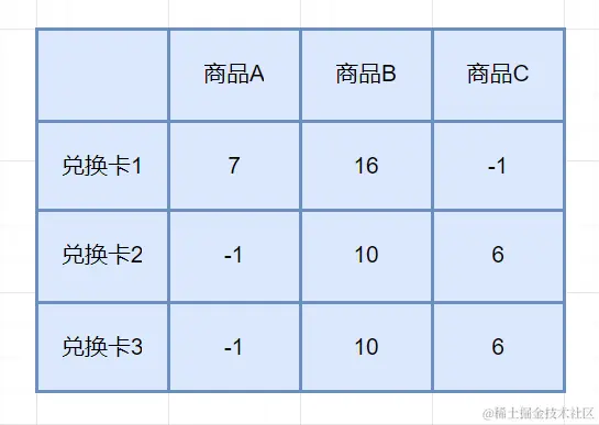 而这个例子的最优选项为【兑换卡1-商品A,兑换卡2-商品C,兑换卡3-商品B】,优惠总额为 23 元。