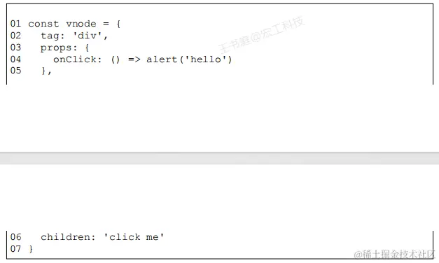 - props 是一个对象,用来描述 标签的属性、事件等内容。可以看到,给 div 绑定一个点击事件