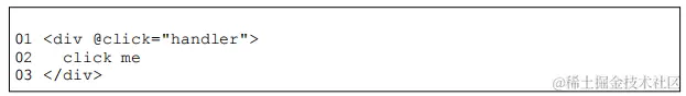 - 例如点击事件 <div @click="handler">